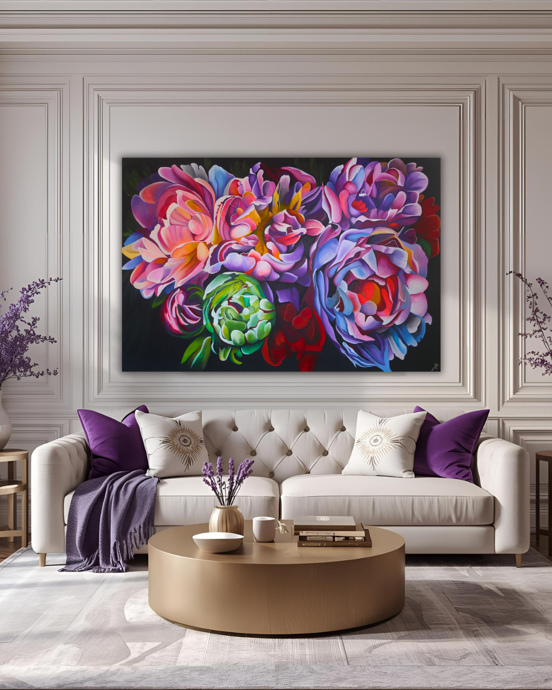 Rozzař svůj prostor energií, krásou a harmonií. Tento originální obraz zachycuje explozi barev a emocí prostřednictvím květin, které doslova ožívají na plátně. Každý tah štětce vypráví příběh o radosti, vášni a vnitřní síle.